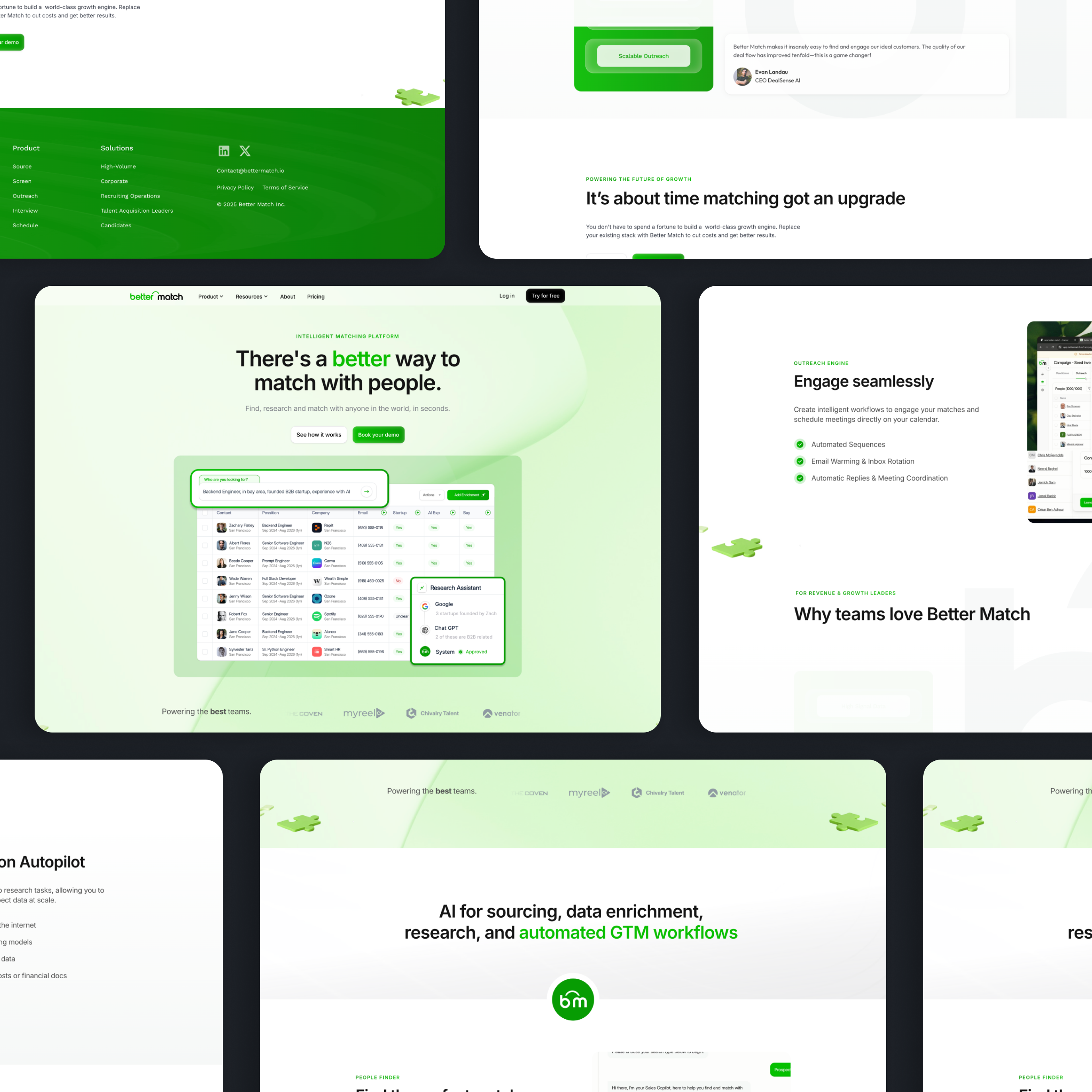 BetterMatch is a powerful AI platform with multiple use cases—sales, hiring, partnerships, GTM—but the previous website didn’t explain that clearly. The value was there, but the story wasn’t. Visitors struggled to understand what the product actually did, who it was for, and how the different features—sourcing, enrichment, research, outreach—fit together. As a result, the website wasn’t doing enough to support demos, sign-ups, or serious product conversations.